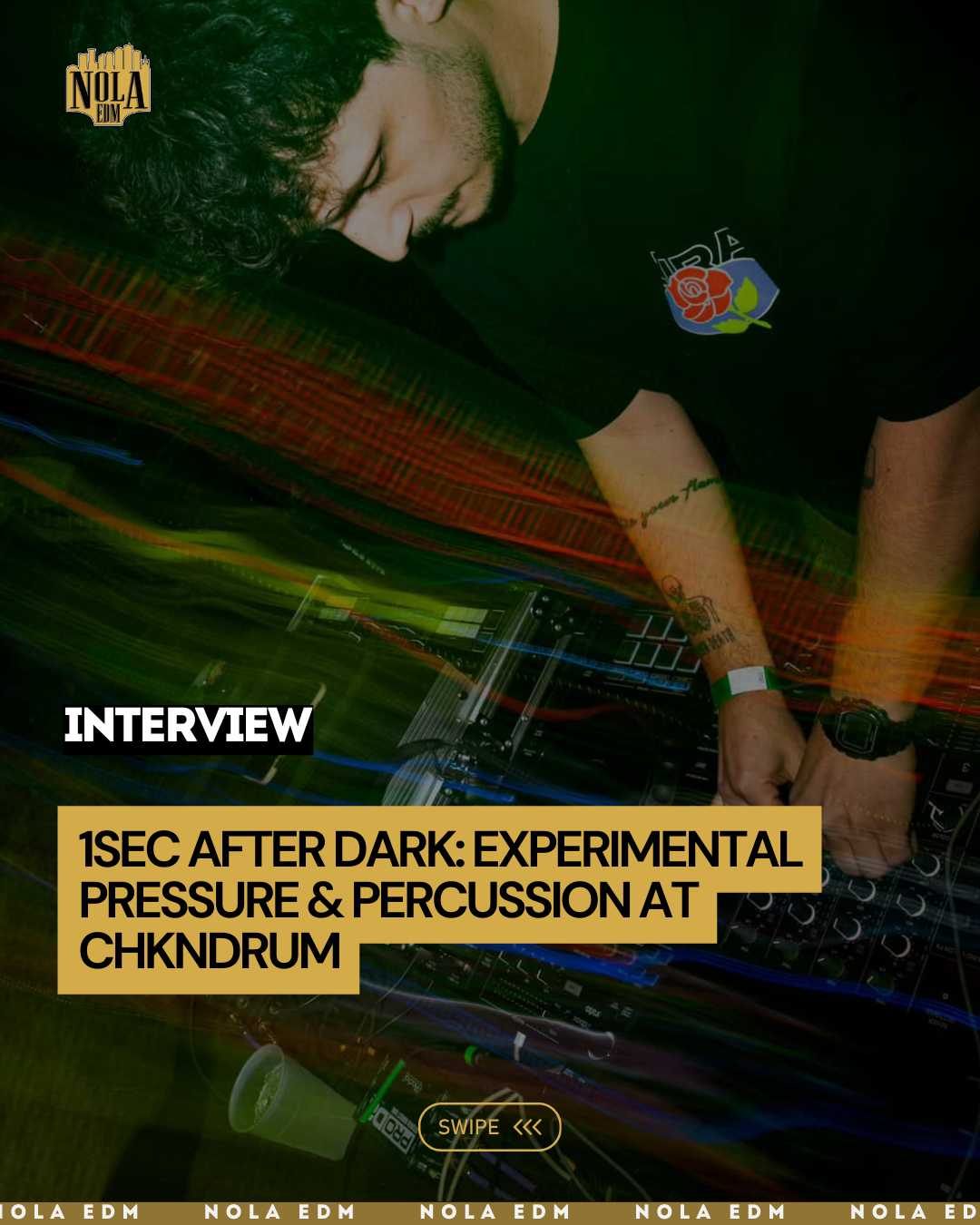In this exclusive interview, we catch up with 1SEC (@1secofficial), a bass-driven producer whose sound is built on experimental design, heavy percussion, and genre-fluid energy. Making his CHKNDRUM debut, 1SEC steps into one of New Orleans’ most rhythm-forward underground platforms with a set packed with originals, unreleased material, and high-intensity movement.