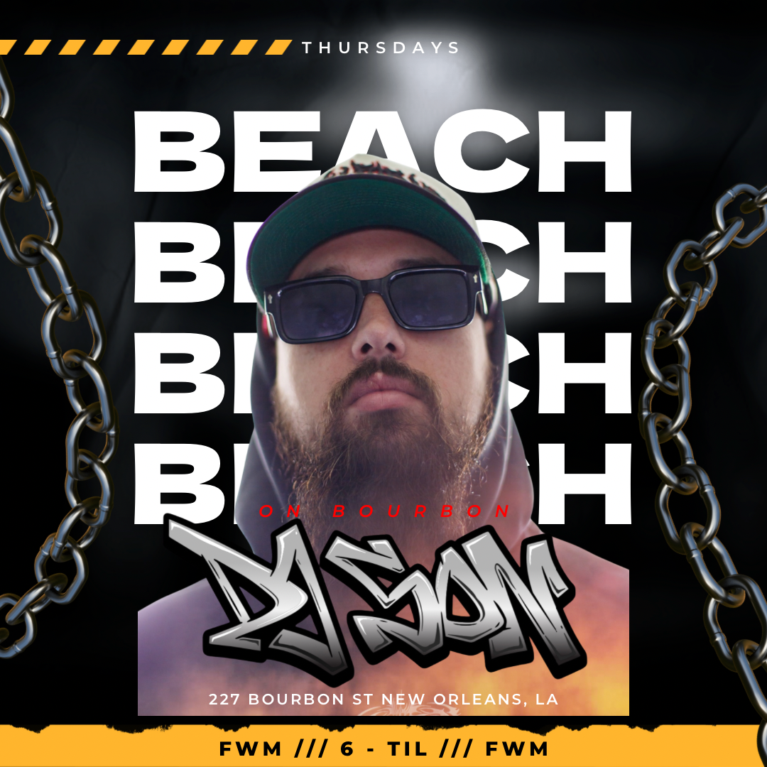 Get ready for DJSON at The Beach on Bourbon,a high-energy night bringing the city’s signature party spirit to the French Quarter’s hottest open-air club. Bourbon Street meets bassline when DJSON drops a mix of dance, house, and hip-hop tracks that keep the crowd moving ’til late.
